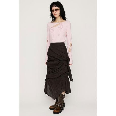 【TUCKED TIE SK】■POINT:タックを施し、立体的なシルエットがポイントのスカート。垂れているタイは、縛ったり垂らしたりと気分によって変えられます。■DETAIL:異なる種類のチェック柄を使用し、カラーによって違う表情に。スリットも入っているので、足さばきも抜群です。■STYLING:シンプルなトップスを合わせるだけで映えるアイテム。落ち着いたカラーなので、どんなトップスとも相性抜群です。■FABRIC/MATERIAL:肌触りの良いコットン素材を使用しています。■透け感:なし■光沢感:なし■伸縮性:なし■裏地:あり※本品は素材の特性上色落ちします。洗濯、クリーニング、着用(使用)時に他の衣類や雑貨、家具類に色移りする事があります。特に汗や雨等で湿った状態では、色落ちが顕著になります。白、淡色との組み合わせは避け、お取り扱いには十分ご注意下さい。※商品画像はサンプルのため、色味やサイズ、素材の混率等の仕様に変更がある場合がございますので、予めご了承ください。※一部予約商品につきましては生産上の都合によりお届け予定日や店頭発売と前後する場合もございます。※追加生産商品は、一部の店舗、通販で販売中の場合がございます。予めご了承下さい。