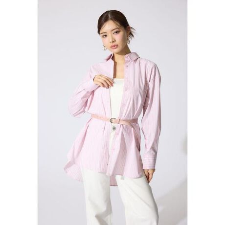 【羽織りにもトップスとしても万能に着回せるシャツトップス】■ポイント定番でありつつ抜け感も足したデザインシャツトップス。シンプルな無地のカラーと、春らしいポップなランダムストライプの生地を採用し着回しが万能なアイテムにしました。1枚でパっと着用するのも可能ですし、付属の合皮ベルトでウエストマークをつけて下のボタンを2?3つ開けて裾を広げて着用も今時でおすすめです。■ディテール後ろの丈を長くし着用した時に前後に動きをつけました。またシャツの袖下にはボタンディテールを施し、開閉するとポンチョ風にも着用できます。■スタイリングベルト有り無しでのスタイリングや、袖のボタンが脇まで開けられるのでインナーにシアートップや、タイトのニットをレイヤードしても様々なスタイリングが楽しめます。■生地透け感:なし裏地:なし伸縮性:なし光沢感:なし厚さ:なし付属:合皮ベルト付き■商品のお気に入り登録お気に入りアイテムの再入荷・在庫1点などの通知を受け取ることができます。[注意事項]※画像の商品はサンプルです。実際の商品と仕様、加工が若干異なる場合があります。※画像の商品は光の照射や角度、お使いのモニター環境により、実物と色味が異なる場合がございます。※着用、お取り扱いの際は、アテンションタグをご確認ください。