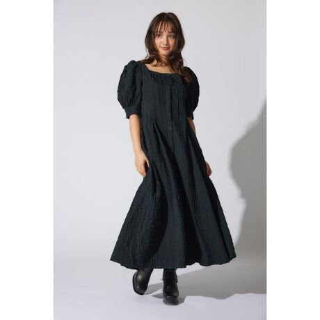 バストギャザーデザインジャガードフレアワンピース