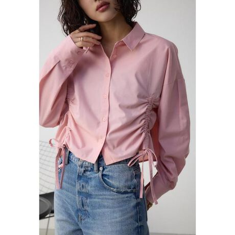 ■フロントギャザーシャツ■ポイントフロントのドロストデザインがポイントのデザインシャツです。■ディティールフロントに施されたドロストコードはお好みで長さ調整が出来、シルエットの変化が楽しめるのが魅力です。ドロップショルダーでゆったりとしたシルエットに仕上げています。■スタイリングギャザーを絞ってハイウエストボトムを合わせるスタイリングが今季らしくおすすめです。■生地通気性、吸湿性に優れた通年着られるTCブロードを使用。透け感:なし裏 地:なし伸縮性:なし光沢感:なし[注意事項]※画像の商品はサンプルです。実際の商品と仕様、加工が若干異なる場合があります。※画像の商品は光の照射や角度、お使いのモニター環境により、実物と色味が異なる場合がございます。※着用、お取り扱いの際は、アテンションタグをご確認ください。