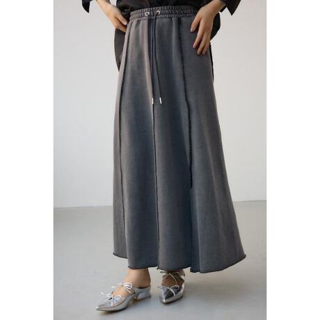 ■ビンテージライクウラケスカート■ポイントヴィンテージライクな加工感が目を引く、裏毛素材のロングスカート。■ディティール裾に向かってゆるやかに広がるセミフレアシルエット。すっきりと見せてくれる切り替えデザインと裾に入ったスリットがポイントです。それぞれ硫化染や水洗いを施し、抜け感のあるヴィンテージライクな風合いに仕上げました。開きの無い総ゴムウエスト仕様のイージーな履き心地も◎。■スタイリングスニーカーやTシャツを合わせたカジュアルなスタイルはもちろん、シャツやコンパクトトップスを合わせてレディに着こなすのもおすすめです。Tシャツからニットまで、幅広いトップスと合わせやすくシーズンレスで着用いただけます。■生地色落ちの可能性があり、色にも個体差がありますが、製品染めの特性です。裾は断ち切りになっています。丸まったりほつれてくることがありますが、仕様特性です。透け感:なし裏 地:なし伸縮性:なし光沢感:なし[注意事項]※画像の商品はサンプルです。実際の商品と仕様、加工が若干異なる場合があります。※画像の商品は光の照射や角度、お使いのモニター環境により、実物と色味が異なる場合がございます。※着用、お取り扱いの際は、アテンションタグをご確認ください。
