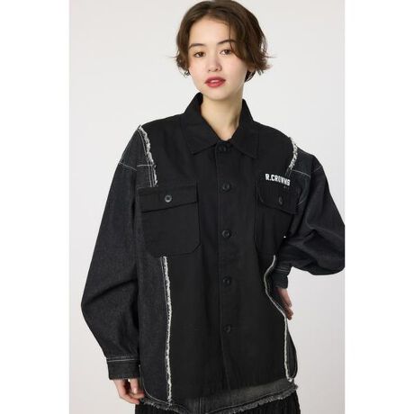 ■ポイントデニムとツイル生地がドッキングされたリメイクライクなミリタリーシャツです。バックには刺繍のロゴが入っていてRODEO CROWNSならではのアイテム。ルーズなサイズ感でインナーを選びません。■ディティール後身頃には振り刺繍のロゴをあしらい、左胸には、ミリタリーテイストなプリントのテープワッペン付きで、ヴィンテージ感を出しました。■スタイリングアウターとしてTシャツの上に羽織ったり、腰に巻いてコーディネートのアクセントにするのにもピッタリです。メンズライクなスタイリングがおすすめです。■生地中心身頃はコットン、カーキの脇身頃にはインディゴデニム、ブラックの脇身頃にはブラックデニムを使用し、STONE BIO加工仕上げで雰囲気たっぷりの生地になっています。身頃切替え部分は裁ち切り仕様でよりカジュアルに。デニム箇所の加工感と、身頃切替え線の断ち切り部分は多少の個体差がある場合があります。また経年劣化による色落ちが起こる場合がありますので、製品の特性としてあらかじめご了承ください。透け感:なし光沢感:なし伸縮性:なし裏 地:なし[注意事項]※画像の商品はサンプルです。実際の商品と仕様、加工が若干異なる場合があります。※画像の商品は光の照射や角度、お使いのモニター環境により、実物と色味が異なる場合がございます。※着用、お取り扱いの際は、アテンションタグをご確認ください。