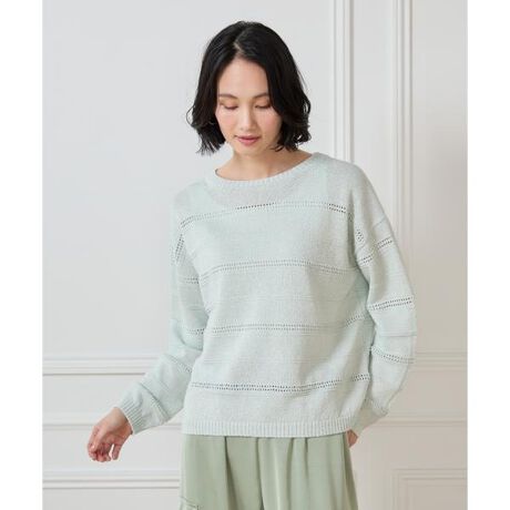 清涼感のある肌触りで、軽やかに着ていただける和紙混素材ニット。春らしいナチュラルな印象のトップスに仕上げました。ゆったりシルエットで抜け感を、ドロップショルダーにすることで華奢見せを表現しています。バランスを考えた袖口と裾の細めのリブや、袖のサイズ感にもこだわりました。ところどころに透かし柄を入れアクセントにしています。・水洗い可■サンプル撮影商品■こちらの商品はサンプルでの撮影となっております。実際の商品とは、サイズや色味、素材、デザイン等の仕様が若干変更になる場合がございます。