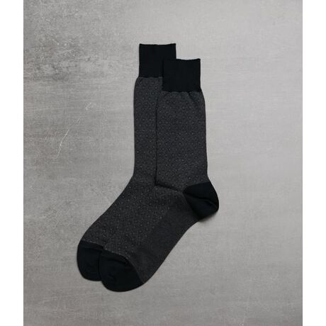 細やかな幾何学柄が上品な印象を与えるビジネスソックス。シックなデザインでありながら、しっかりとしたホールド感があり、一日中快適な履き心地を提供します。