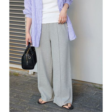 ストンと落ちるワイドシルエットのスウェットパンツ。