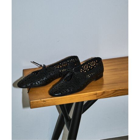 レーザーカットのフラワーディテールが新鮮なフラットシューズ。
