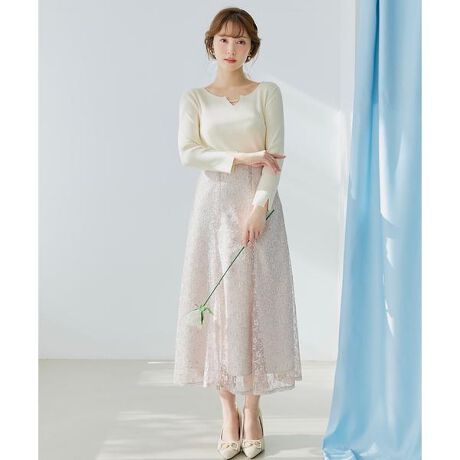 【動くたびに光の反射を受けて上品にキラキラと輝く、フラワーレース接ぎフレアスカート】【Point】・女性らしく繊細な印象に仕立てる、艶めく光沢感を放つフラワーレースを使用したフレアスカート。・身体に負担を掛けずにハイウエストで優しくフィットし、すっきりと見せる、計算された立体的な美しいシルエット。・六枚接ぎで作る裾に向かって上品に広がるフレアは、歩き姿にエレガントな気品を持たせます。・日本ならではの丁寧な縫製技術で作られた、美しい仕上がりが自慢のアイテムです。ケア方法:手洗い可能透け感:あり裏地:あり伸縮性:なし(ウエスト部分:後ろゴムあり)光沢感:あり生地の厚さ:薄手