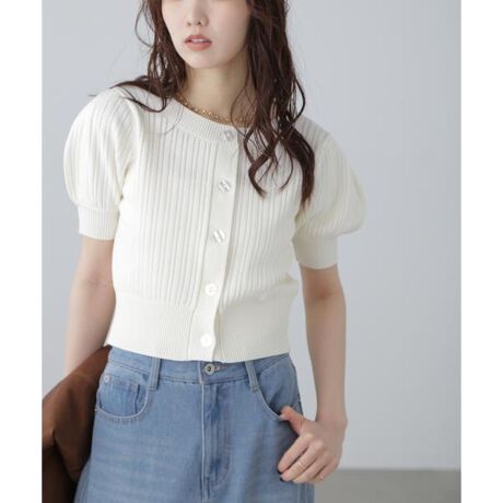 程よくざっくりとした編地でどんなボトムスにも合わせやすい半袖ニット。身頃と袖はふんわりとしたシルエットで、裾と袖口は編地変化でメリハリを叶えてくれます。すっきりとした丈感で、インでもアウトでも着こなせる便利なデザイン。前後2wayでカーディガンとしてもプルオーバーとしても着用できます。コンパクトなサイズ感なのでパンツでもスカートでも相性が良く、キャミワンピースの羽織りにもおすすめです。※モデルの着用画像の場合、光の当たり具合により、実際の色味と異なって見えることがございます。色味は、商品単体の画像をご参照ください。