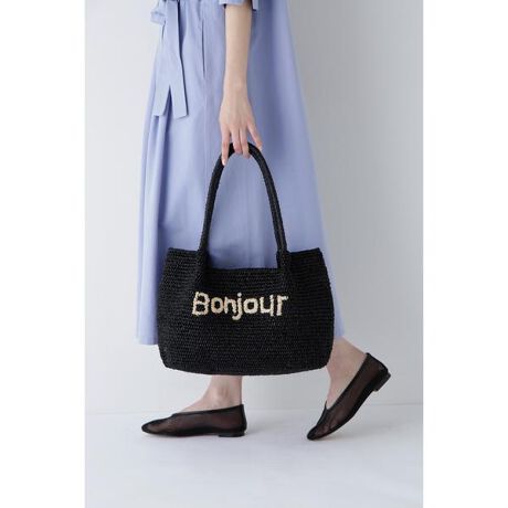 「Bonjour」ロゴ刺繍がキャッチーなラフィアバッグ