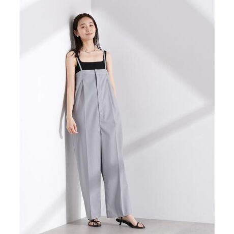 センタープレスパンツのデザインがキレイめな印象のベアオールインワン。ボディラインを拾いにくい直線的なシルエットが縦を強調してくれるので、オールインワンながらすっきり見えしてくれるのも嬉しいポイント。シンプルなインナーと合わせたり、シャツ等を羽織るだけでもスタイリングが決まる一着です。