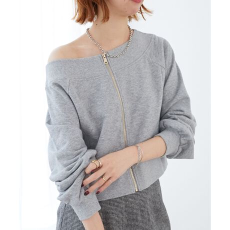 オフショルジップスウェット