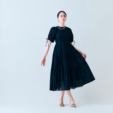 ・トップス部分は程よくゆるさのあるコンパクトフォルムで、ウエストをきゅっとコンシャスにする事でスカート部分のティアードシルエットを活かしたワンピース。