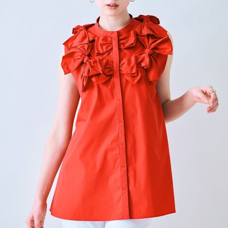 ・すっきりとしたノースリーブデザインが、リボンモチーフを強調したデザイントップス。
