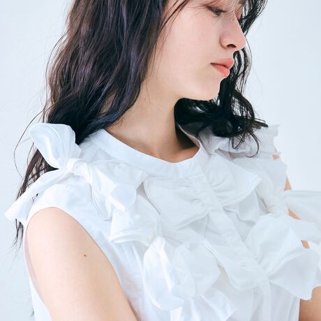 ・クラシックな女性らしさを演出してくれるノースリーブブラウス。