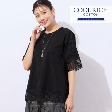 【洗える・接触冷感】COOL RICH COTTON レースコンビTシャツ