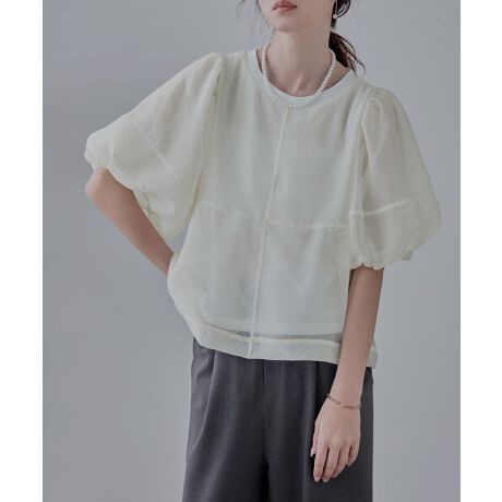 オーガンジーパフスリーブトップス