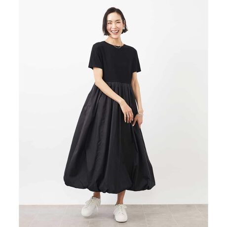 異素材のドッキングデザインで一枚で着映えするワンピース。スニーカーに合わせてカジュアルに、パンプスと合わせてドレッシーにも、合わせるアイテムで様々な雰囲気でお召しいただけます。