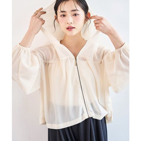 エアリーな透け感でどんなスタイルにも溶け込むフード付きシアーパーカー。
