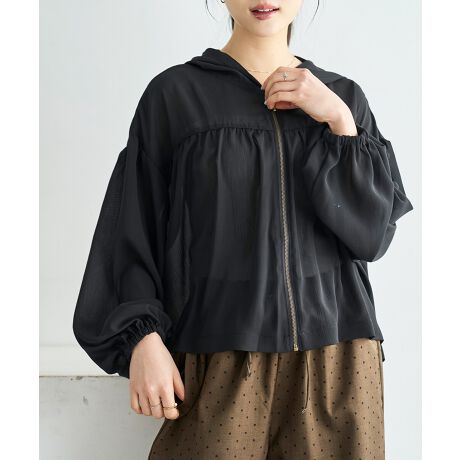 エアリーな透け感でどんなスタイルにも溶け込むフード付きシアーパーカー。