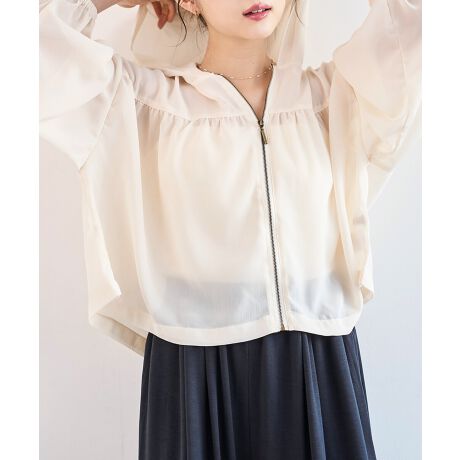 エアリーな透け感でどんなスタイルにも溶け込むフード付きシアーパーカー。