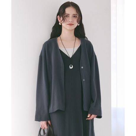 カラーレスのライトな羽織りアイテム。襟を後ろに少し抜いて女性らしく着こなすのがオススメです。袖のシルエットはスプリットラグラン(前は肩がドロップしたライン、後ろはドルマンのライン)なので、後ろの袖はゆったりとした贅沢なシルエットとなっています。裾に向かってつけたコクーンフォルムが今年らしいニュアンスです。ワイドなボトムやフレアスカートに気軽に羽織って楽しめる1枚です。上品なリラックスムードが漂うライトグレー(#003)、カジュアルの中に大人っぽさのあるグレー系(#004)の2色展開です。