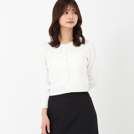 真っ白で、短め丈、上品でワンピースの上から羽織るのにピッタリで思った通りのカーディガンで嬉しいです!