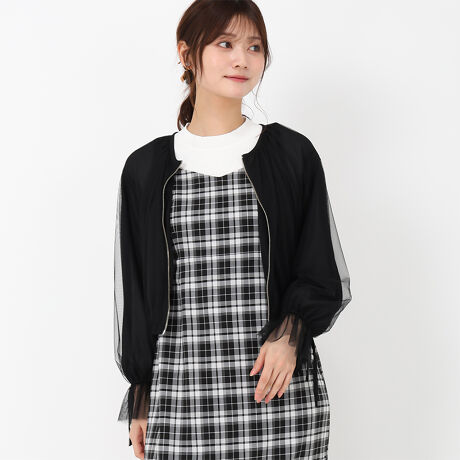 ふんわりチュールと袖リボンでフェミニンさを纏うブルゾン。コンパクトな着丈でバランスもとりやすく、スタイルアップ効果を後押ししてくれるのも嬉しいポイント。バレエコアなデザインでスタイリングに上品な華やかさをプラスしてくれるアイテムです。■fabric透け感[有り]裏地[無し]伸縮性[有り]生地の厚さ[薄手]