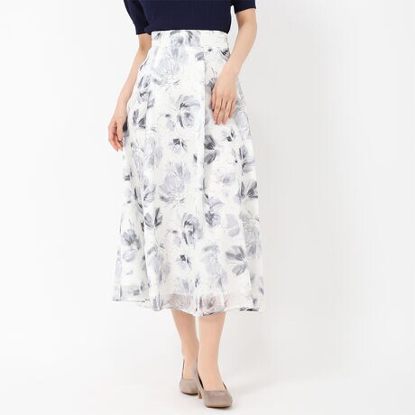 柔らかなタッチの水彩フラワー柄でフェミニンなムードを漂わせるスカート。軽やかなシフォンとラメ感が上品な華やかさを演出してくれます。オフィスカジュアルやデートコーデなど、オンオフ問わず幅広いシーンにも活躍してくれるアイテムです。■fabric透け感[有り]裏地[有り]伸縮性[無し]生地の厚さ[薄手]ウエストゴム[有り]ファスナー[有り]ポケット[無し]