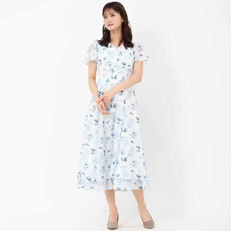優しい水彩タッチが魅力、フラワープリントレイヤードワンピース