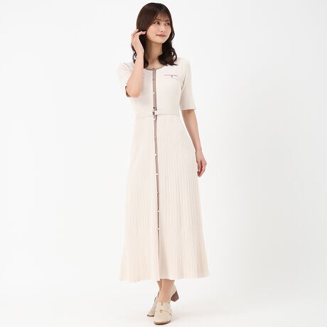 25SS クルーネック配色ニットワンピース