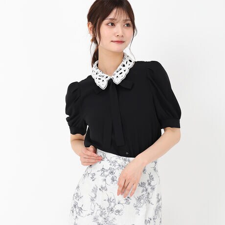 襟のレースがクラシカルなムードを演出するブラウス。レースや首元のリボンは取り外しできるので、気分に合わせた着こなしを楽しめます。ふんわりとしたスリーブが可愛らしい印象に。ボトムスにタックインしたコーディネートがおすすめです。■fabric透け感[やや有り]裏地[無し]伸縮性[やや有り]生地の厚さ[薄手]