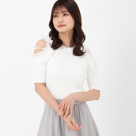 25SS 肩開きラッフルニット