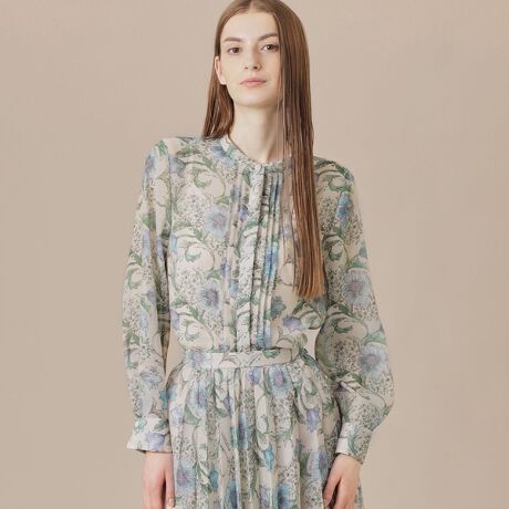 【婦人画報掲載】【BIBURY FLOWER】ドローイングカラーバイブリーフラワーブラウス