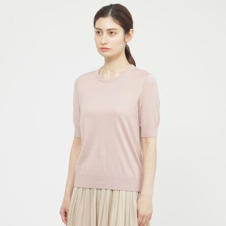 上質な素材を活かしたベーシックなクルーネックの半袖ニットプルオーバーです。
