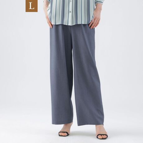 【L】【ウォッシャブル】ライトシャンブレーデニムワイドストレートパンツ