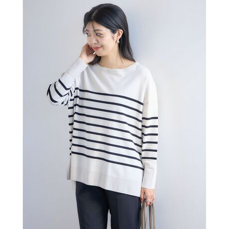 ■デザインリラックス感のあるワイドシルエットで今シーズンは女性らしいボートネックがポイント。前後差のあるヘムラインが、体型カバーしつつスタイルアップしてくれます。