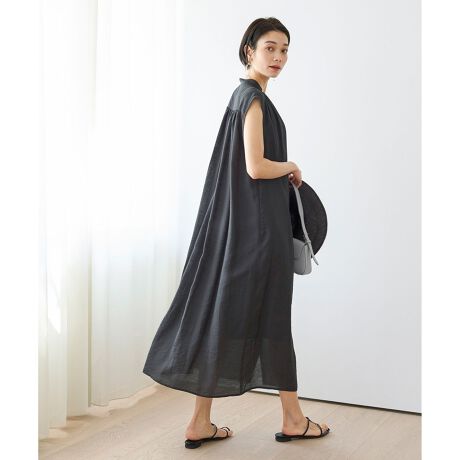 ■デザイン前後に細かいギャザーがたっぷり入っており、女性らしい印象に仕上がるワンピース。風を通しやすくリラックス感のあるシルエットで夏にぴったりの一枚です。アンダードレス付きなので1枚ではもちろん、前開きで着用してボトムス合わせでレイヤードスタイルが出来たりと幅広くスタイリングをお楽しみただけます。