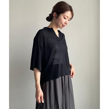 ■素材番手の細いコットンに超強撚加工を施しました。さらっとひんやりした接触冷感機能に加え、糸の表面は美しい滑らかさと上品な光沢感があるシアー素材です。