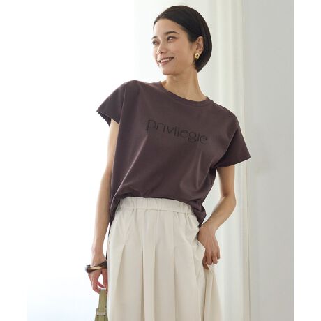 ロゴデザインを豊富にご用意しました!■デザインシンプルでどんなコーディネートにも取り入れやすい、ロゴ刺繍がポイントのクルーネックT。カジュアルなアイテムながら、きちんと見えする上質な風合い、スッキリとしたネックライン、絶妙なサイジングに拘りました。夏のデイリーコーデに上品に取り入れられる1枚です。軽やかなフレンチスリーブとタイト過ぎないナチュラルな見幅シルエットで女性らしい雰囲気を演出してくれます。前後差のあるシャツテールデザインで、トップスアウトも決まり、横からのシルエットもすっきり見え!カラーによって異なるロゴデザインなので、コーディネートに合わせてロゴの位置や大きさを色違いでお楽しみいただけます。[C'est magnifique]は[素敵!]、[Bon courage]は[頑張って]、[privilegie]は[運がいい]、[IMPATIENCE]は[待ちきれない]の意味です。