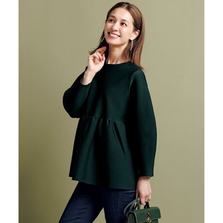■素材軽い着心地でハリ感、ストレッチ性があり、キレイなフォルムを出してくれるシーズンレス素材。サラッとした肌触りでピリングしにくくお手入れしやすいのも嬉しいポイントです。