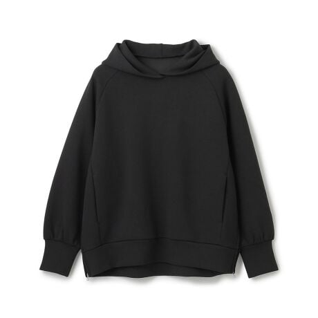 ■デザインハリ感のある素材でつくったフーディ。きれいめの素材なので、カジュアルになり過ぎず、女性らしくい着用いただけるのがポイントです。サイドのZIPがアクセントで、ZIPを開けてインナーを見せた着こなしもおすすめです。ふんわりと立ち上がるフードで、顔回りを華やかに演出します。