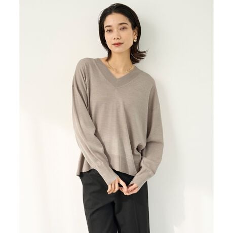 ■デザイン女性らしいVあきにラインに拘り、1枚で着てもインナーを合わせて着てもサマになるVネックプルオーバー。前後差のあるレングスとフロントのラウンドヘムラインがどんなボトムともバランス良く着用頂けます。