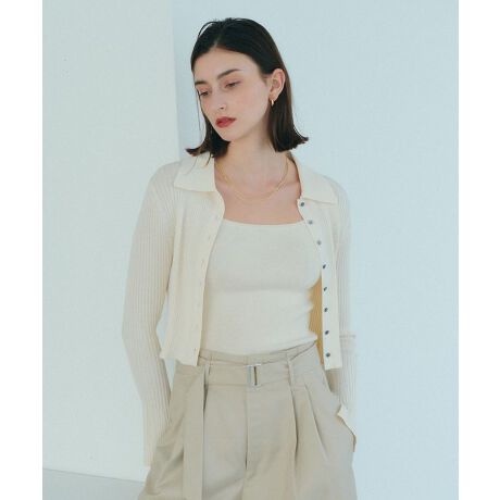 襟付きのニットカーディガンとキャミソールのセットアイテム。