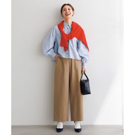 ■デザイン体のラインを拾わず、スタイルアップ見えが叶います。きれいめの生地を採用し、旬の雰囲気はありながら上品に着こなせる1枚に仕上げました。後ウエストにゴムを使用したストレスフリーな履き心地もポイントです。ショート丈のトップス合わせや、トップスインスタイルがおすすめです。