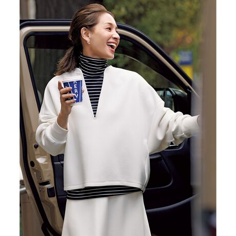 顔まわりスッキリ!シャープに着こなせるキーネックプルオーバー