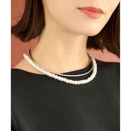 ■デザインメタル素材のチョーカーに、フェイクパールのネックレスを組み合わせた2点セットです。2連での着用はもちろん、チョーカー、パールそれぞれ単品でみお使いいただけるので、コーディネートのバリエーションが広がります。存在感のあるデザインで、印象的な首元にシフトします。