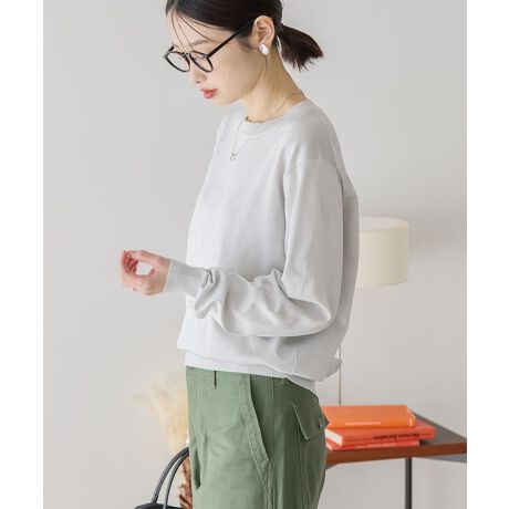 キラキラ輝くラメ混の素材が華やかなニットプルオーバー。やや透け感のある伸縮性に富んだ生地で、快適に着用していただけます。ゆとりのあるシルエットでボトムを選ばず、デイリーに活躍する一枚。ジャケットのインナーやワンピースなどとのレイヤードスタイルにもおすすめです。透け感[ややあり]