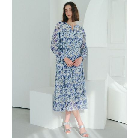 ボタニカル柄シアージャガードプリーツワンピース