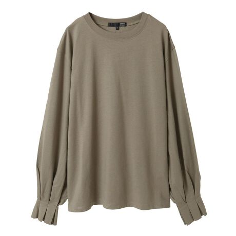 お手入れしやすいコットン100%素材で仕立てたロングスリーブTシャツ。シンプルなデザインながら、袖口に配したタックがエッジの効いたアクセントをプラスします。ゆとりのあるサイズ感でリラクシーな着心地も魅力的。一枚着はもちろん、ジャケットやカーディガンと合わせて袖口を覗かせるスタイリングもおすすめです。透け感[なし]