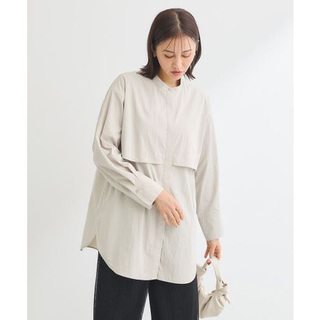 フロントのフライヨークがポイントのデザインシャツ。バンドカラーと比翼ボタンですっきりとさせ、爽やかな印象に仕上げました。さらりとしたシャリ感のある生地が洗練されたスタイリングを演出するアクセントに。カジュアルにもきれいめにも合わせやすく、春らしい軽やかなコーディネートがお楽しみいただけます。透け感[なし]